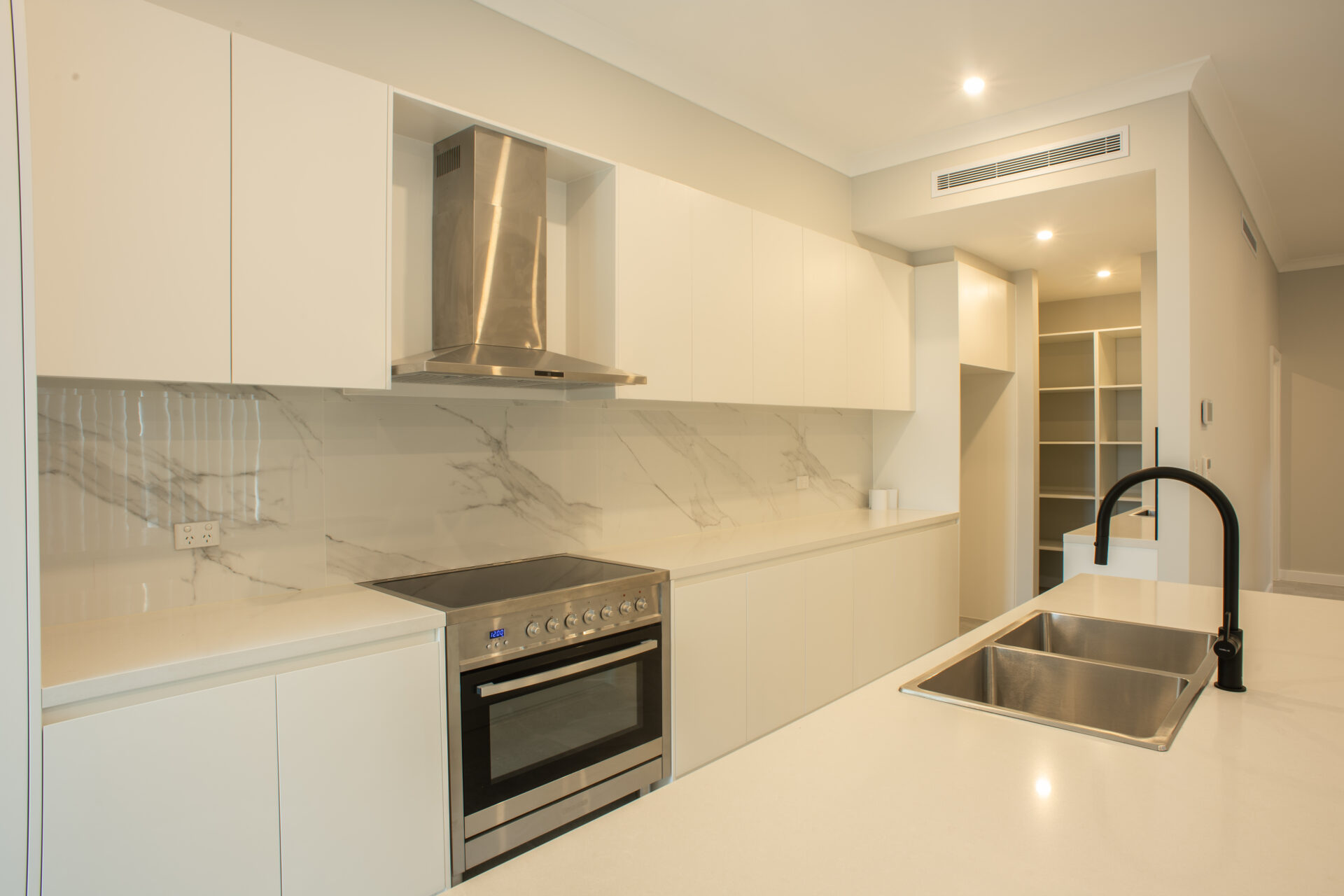 Project Overview – A beautiful home with plenty of space for a large family. Externally cladded with hebel and a hebel power floor, this well-insulated home boasts four large bedrooms; master bedroom with a walk-in wardrobe, ensuite and seating area; formal lounge and dining, eighty-millimetre black satin kitchen and stone benchtops, with island benches stainless steel appliances, air conditioning, light pelmets with ceiling bulkheads, solid timber floors with feature tiles to bathrooms, alfresco outdoor area featuring a kitchenette and bbq area.